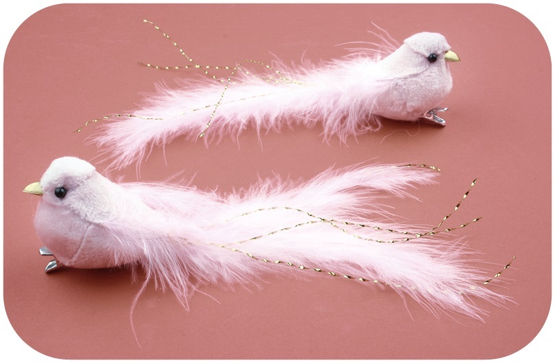 Ptáček plyšový růžový na klipu 2 ks, 14 cm