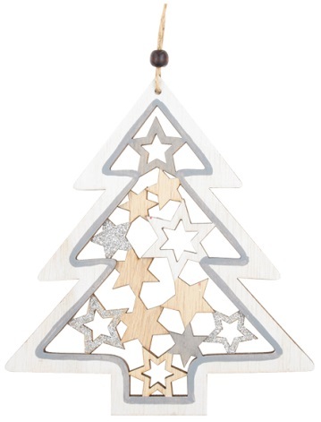 Stromek dřevěný se stříbrnými glitry 15 x 17 cm