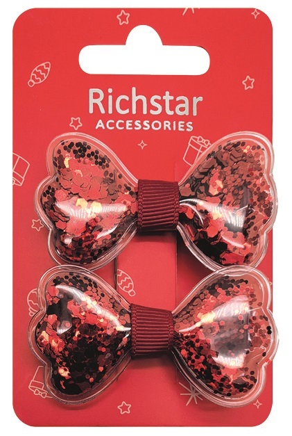 Kokardki na klipsie z sypkim wypełnieniem w postaci drobnych czerwonych gwiazdek ożywią każdą fryzurę!