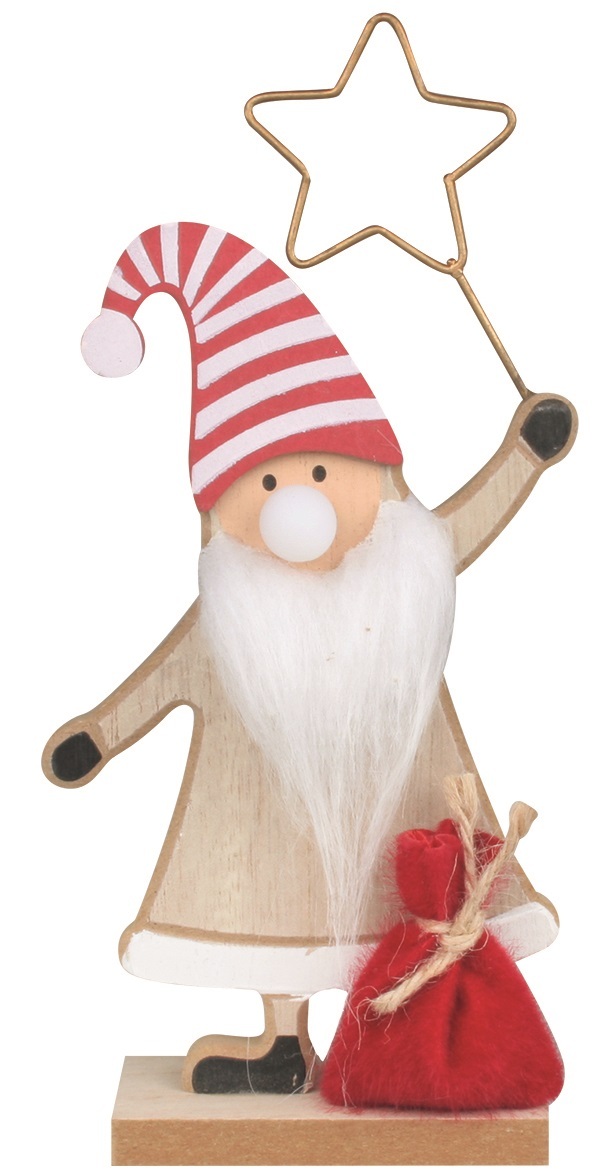 Dřevěná dekorace skřítek se svítícím nosem LED 21 cm