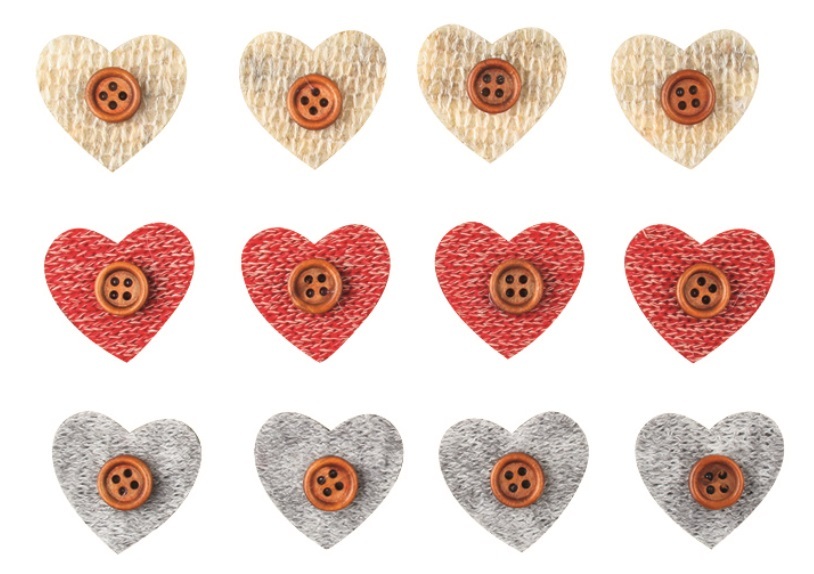 Srdce s knoflíkem a lepíkem 3cm,12 ks v sáčku