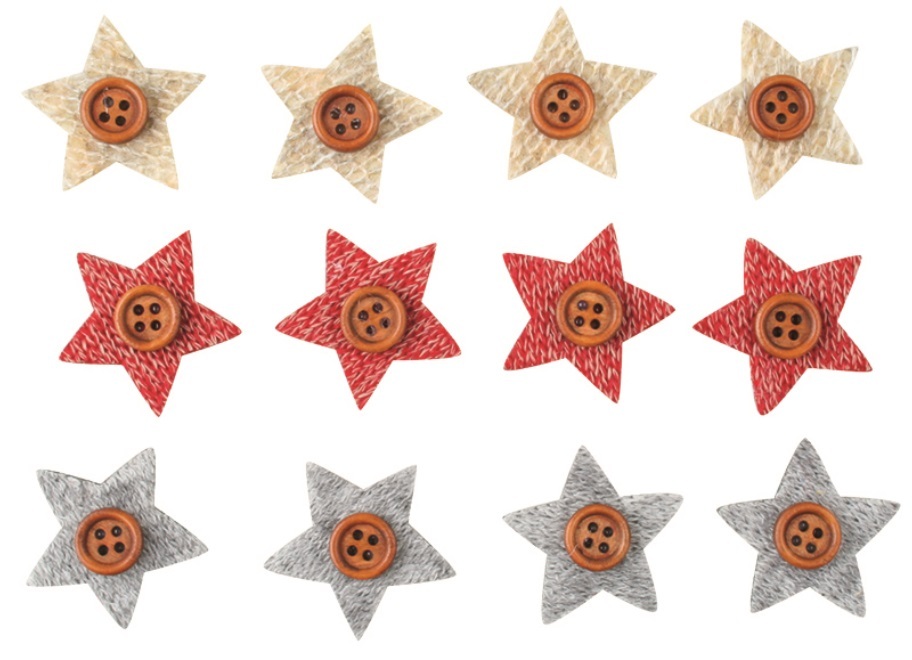 Hvězda s knoflíkem a lepíkem 3cm,12 ks v sáčku