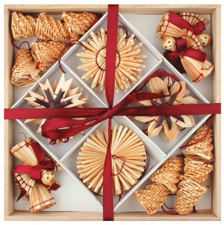 Slaměné ozdoby v krabičceOzdoby využijete k dekoračním či aranžérským účelům.Díky tenké šňůrce je snadno zavěsíte třeba na stromeček.32 kusů v krabičce, mix motivů. przeczytaj całość