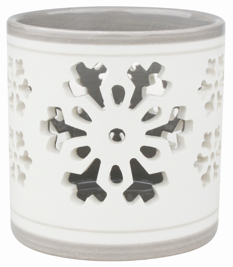 Porcelanowy świecznik z motywem płatka śniegu pomoże stworzyć spokojną i relaksującą atmosferę.