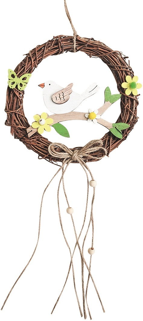 Dzięki sznurkowi wieniec można łatwo powiesić na ścianie lub drzwiach.