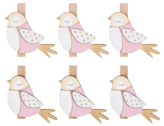Dřevění ptáčci na kolíčkuKolíčky využijete k dekorování věnců či vazeb, nebo je můžete připnout třeba na větvičku.Vytvořte si doma s jejich pomocí tu správnou jarní atmosféru, skvěle se kombinují s položkou č. 7468 a 7478.Jemný moderní motiv, 6 kusů v balení. przeczytaj całość