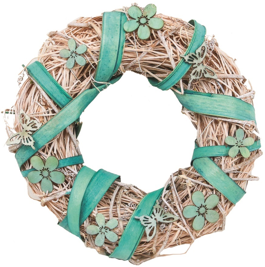 Věnec květinový s tyrkysovými dekoracemi 25 cm