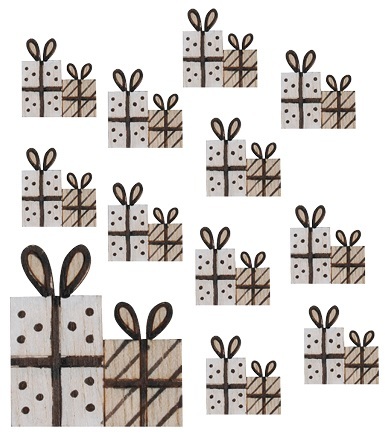 Dřevěné dárky s lepíkemDárečky využijete k dekoračním, aranžérským či výtvarným účelům. Můžete s nimi ozdobit obálky, přáníčka nebo třeba pozvánky.  przeczytaj całość