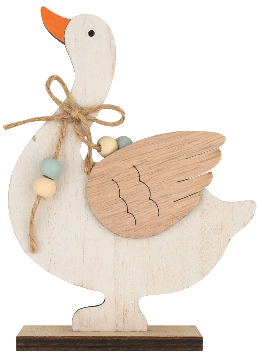 Dřevěná husa na postaveníDekoraci využijete k dekoračním či aranžérským účelům.Roztomilá husička přivede jaro i do vašeho domova!  przeczytaj całość