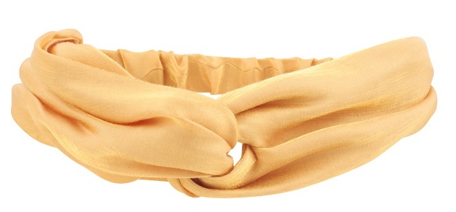 Čelenka elastická saténová s kříženým uzlem, zlatá