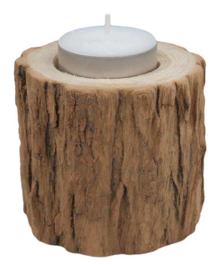 Dřevěný svícen špalíček na čajovou svíčku průměr cca 7 cm, výška cca 6 cm