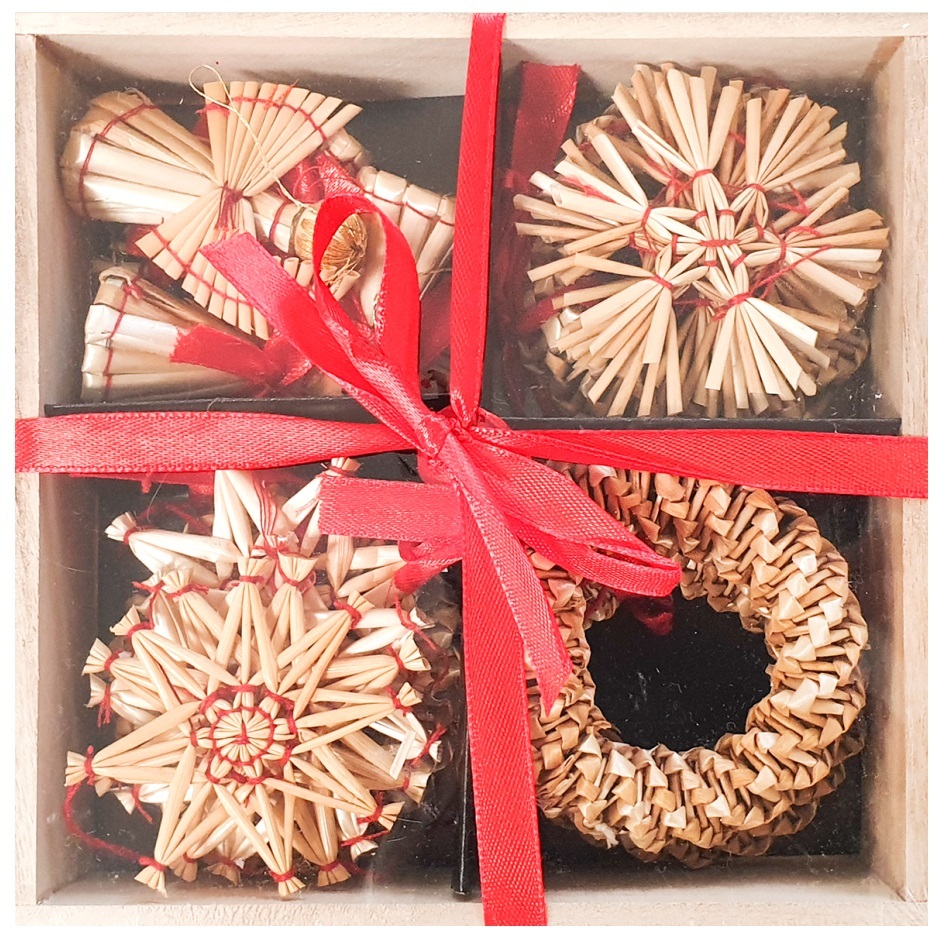 Slaměné ozdoby ve dřevěné krabičceOzdoby využijete k dekoračním či aranžérským účelům.16 kusů v krabičce, mix motivů. przeczytaj całość
