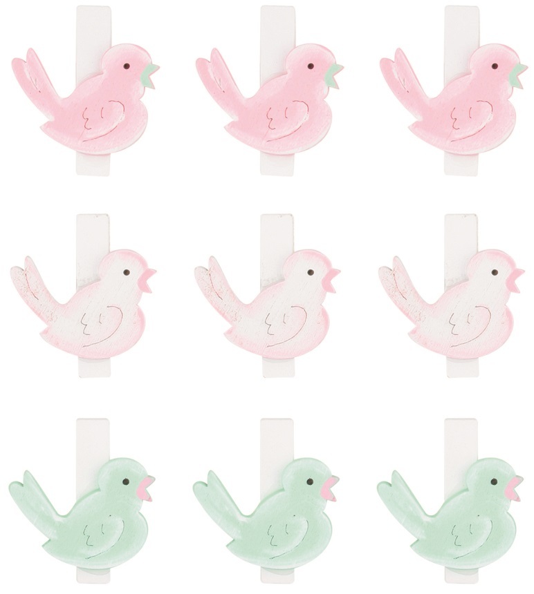 Ptáček dřevěný 3,5 cm na kolíčku 9 ks, pastelové barvy