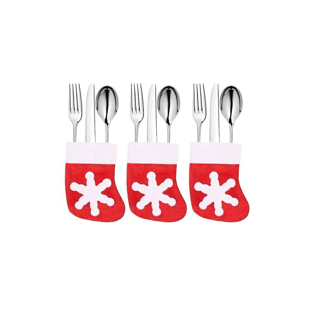 Sada tří obalů na příbory s motivem vánoční punčochy zdobené vločkou. Stylová a elegantní dekorace nejen pro sváteční stůl. Rozměry 12,5x9 cm. przeczytaj całość