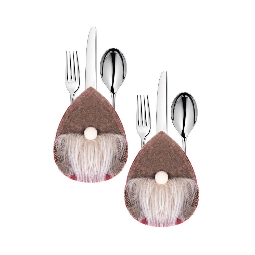 Sada dvou obalů na příbory s motivem skřítka Gnoma. Zadní strana s pouzdrem pro jednoduché zasunutí příborů. Stylová a elegantní dekorace svátečního stolu. Rozměry 14x10,5 cm, šířka zadního otvoru pro vložení příborů cca 6 cm. przeczytaj całość