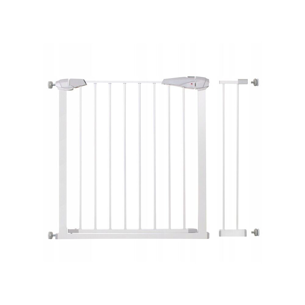 Wysokiej jakości metalowa barierka zabezpieczająca z modułem rozszerzającym, odpowiednia do otworów o wymiarach 76 - 85 cm oraz 90 - 99 cm. Niezawodna ochrona części domu przed niekontrolowanym wejściem dzieci lub zwierząt. Łatwo regulowana, wyposażona w szereg elementów bezpieczeństwa zwiększających poziom ochrony. Certyfikacja zgodnie z normą EN 1930:2011.