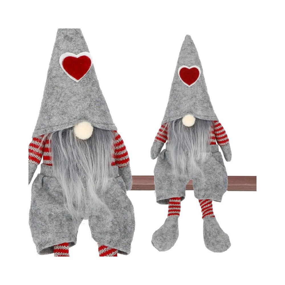 Pluszowa dekoracja świątecznego skrzata o wysokości 37 cm. Pozycja siedząca, zwisające nogi, wysoka czapka z serduszkiem, stylowy strój, stabilna podstawa, materiał wysokiej jakości i przyjemny w dotyku. Przepiękna świąteczna dekoracja, która stanie się ozdobą każdego wnętrza. przeczytaj całość
