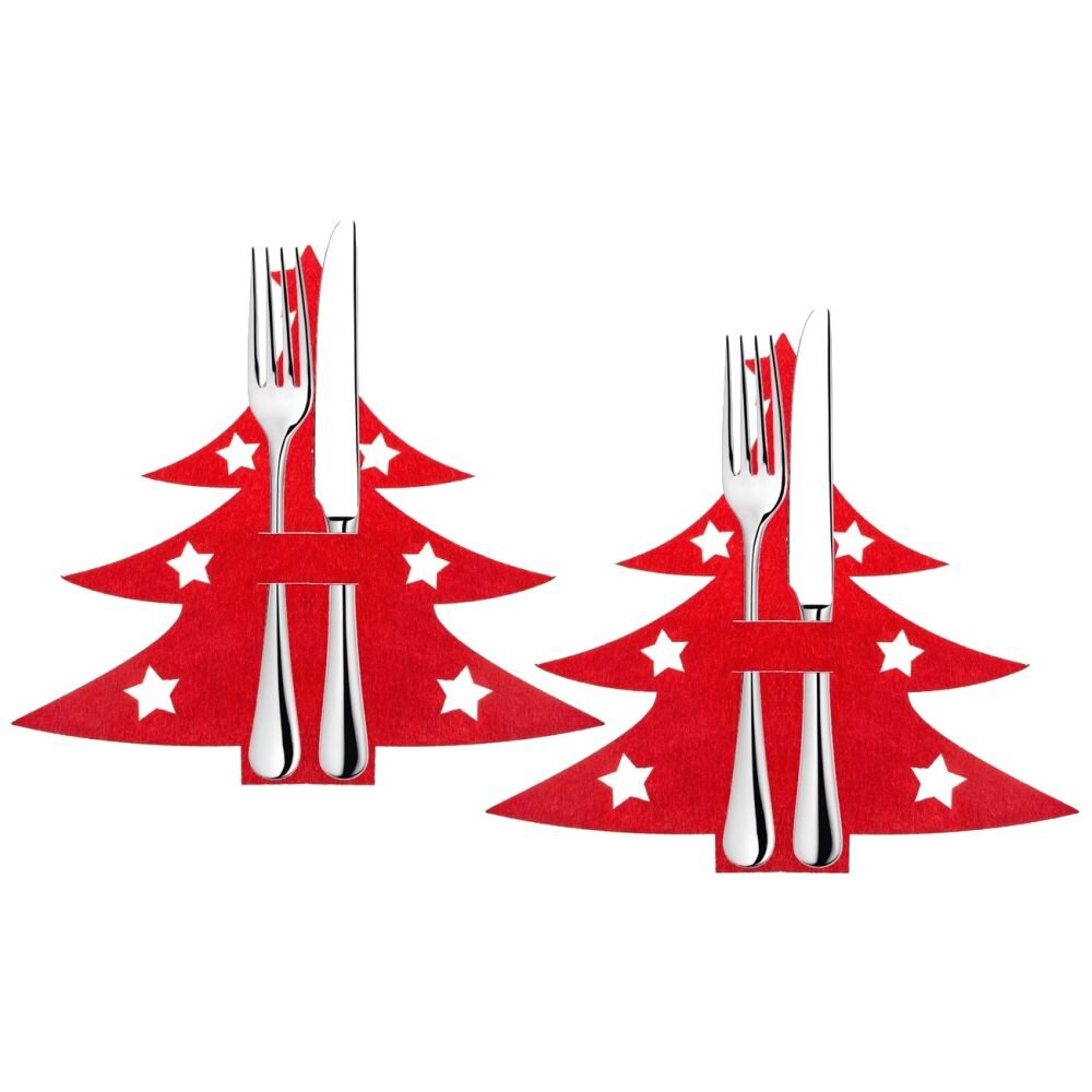 Sada dvou obalů na příbory v provedení vánočního stromu s hvězdami. Poutko pro snadné zasunutí příborů. Stylová a elegantní dekorace svátečního stolu. Rozměry 18x20 cm, šířka poutka pro vložení příborů cca 3,5 cm. przeczytaj całość