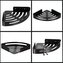 Elegancka półka narożna z uchwytami, która nie wymaga wiercenia w ścianie. Specjalny design w matowej czerni. Kompaktowy rozmiar. Otwory do odprowadzania wody, dodatkowe haczyki do zawieszania akcesoriów. Solidny i wytrzymały materiał, łatwa w utrzymaniu. 2 sposoby montażu, elementy montażowe w zestawie. Odpowiedni dodatek do łazienki lub kuchni.