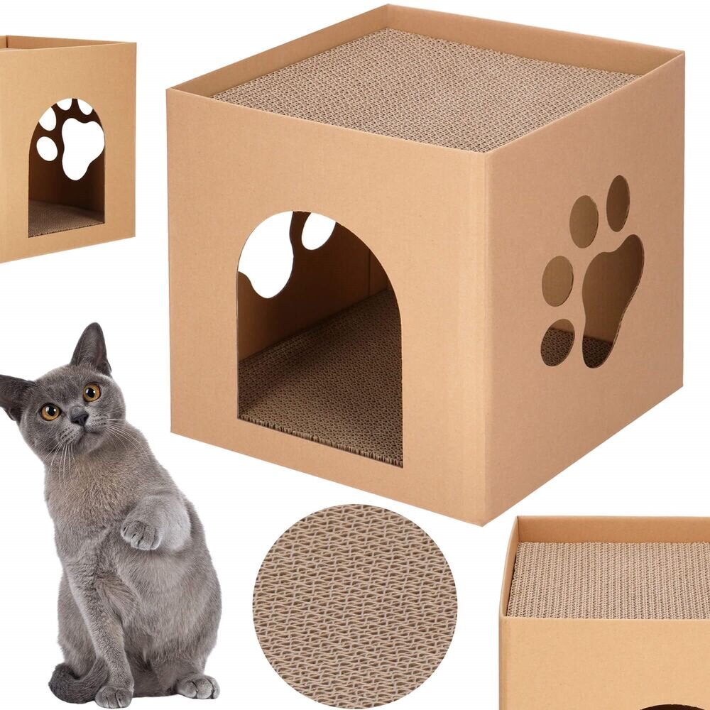 Praktické a ekologické kočičí škrabadlo vyrobené ze 100% nelakovaného kartonu, zdravotně nezávadného materiálu. Škrabadlo má dvě úrovně škrabacích ploch – uvnitř domečku a na stříšce. Boční stěny jsou vybaveny otvorem ve tvaru tlapky, což dodává domečku originální vzhled a kočkám umožňuje snadný... przeczytaj całość