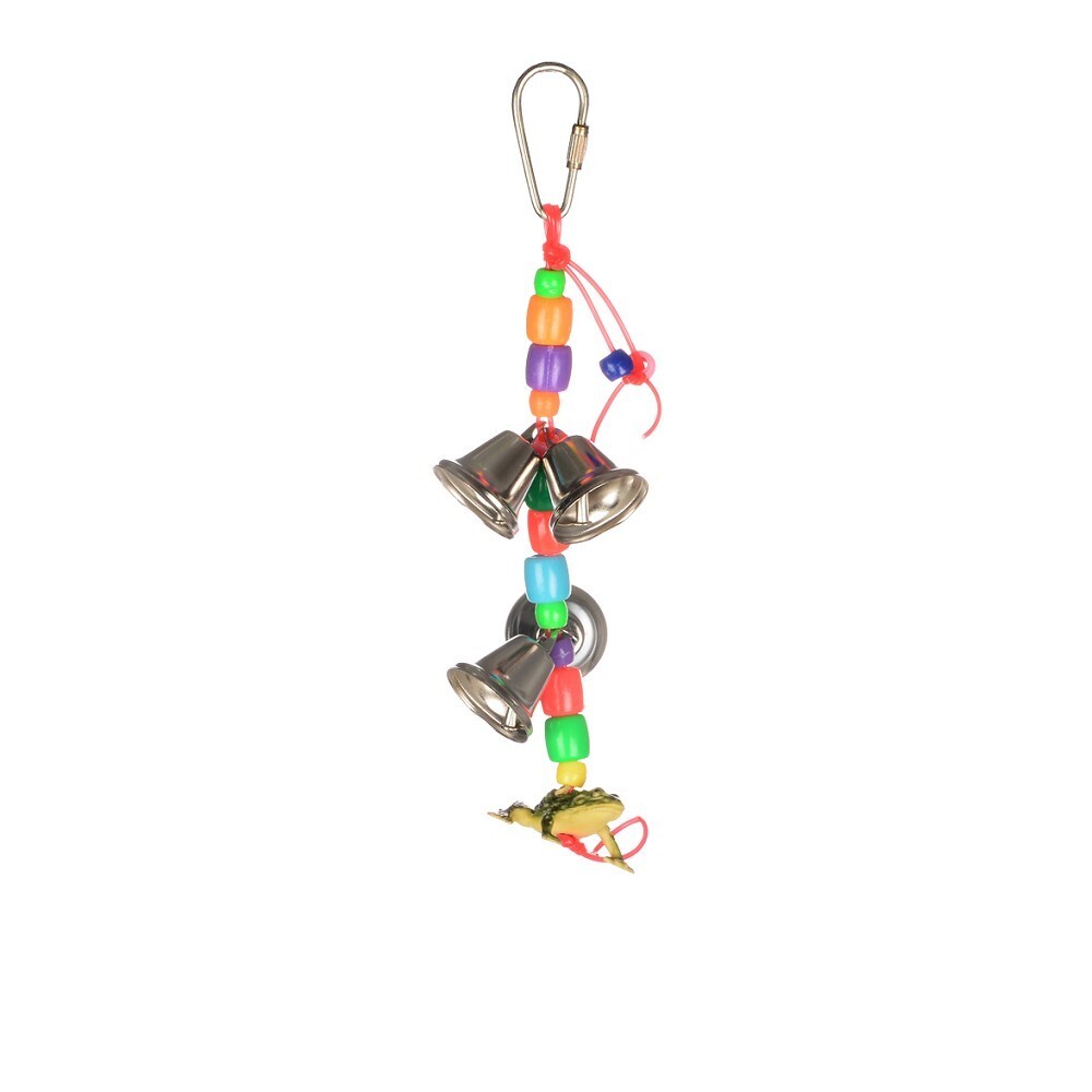 Plastowa zabawka z dzwoneczkami, koralikami i żabką, odpowiednia dla małych i średnich egzotycznych ptaków.Materiał: plast, metalDługość: 25 cm przeczytaj całość