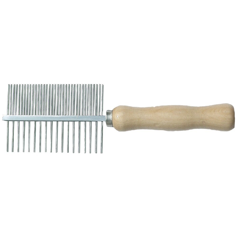 Multifunkční oboustranný hřeben na úpravu srsti.K finální úpravě srsti psů, koček a ostatních malých zvířat.Hřeben je vybaven speciálními neostrými hroty, které zvíře nemohou poranit.Délka hřebenu: 17,5 cmDélka zubů: 5,5 cmDélka rukojeti: 10 cm przeczytaj całość