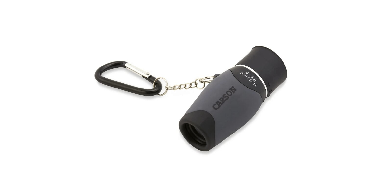 Mały kieszonkowy monokular - Carson MM-618 MiniMight z karabińczykiem z możliwością zawieszenia na klucze. Jest idealnym towarzyszem podczas wędrówek pieszych lub kempingu.