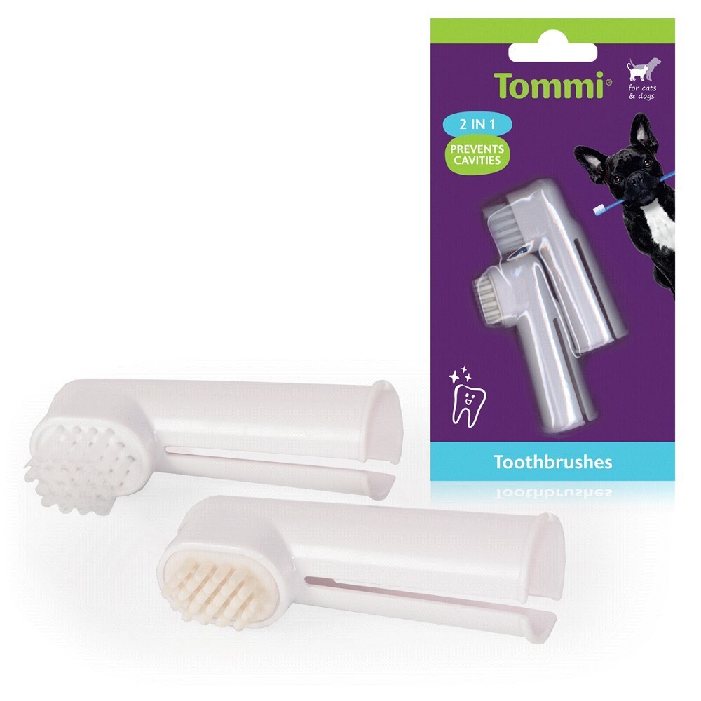 Zubní kartáček na prst pro psy a kočky.• pravidelná péče zabraňuje krvácení dásní• 2 v 1 = čistící + masážní kartáček v 1 balení• brání tvorbě zubního kamene• chrání účinně ústní dutinu Vašeho psa i kočkyNávod k použití: kartáček nasaďte na prst a krouživými pohyby odstraňte zubní plak z chrupu Vašeho psa či kočky.Obsah balení: 1 ks čistícího kartáčku, 1 ks masážního kartáčku