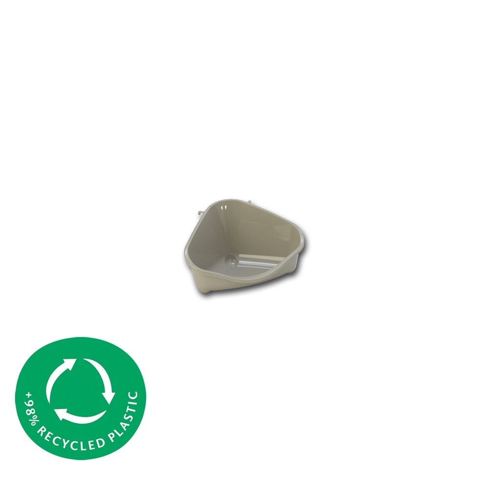 Pets Corner Tray można wykorzystać na dwa sposoby - jako miejsce do odpoczynku lub jako toaletę. Kształt umożliwia łatwe umieszczenie w rogu klatki. Produkt jest częścią kompletnej linii + 98% RECYCLED PLASTIC, która podąża za nowoczesnym trendem produktów z materiałów z recyklingu.