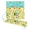 - Obustronny motyw z literami, cyframi i motywami miejskimi rozwija wyobraźnię i umiejętności dziecka.