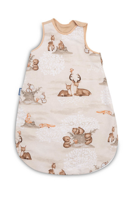 Śpiworek do spania w rozmiarze M będzie służył nieco starszym dzieciom (9-18 miesięcy) zapewniając im ciepło i bezpieczeństwo. Uszyty jest z miękkiej bawełny wypełnionej otuliną. Wnętrze i tył śpiworka są wykonane z bawełny muślinowej. Produkt nie zawiera twardych elementów, które mogłyby...