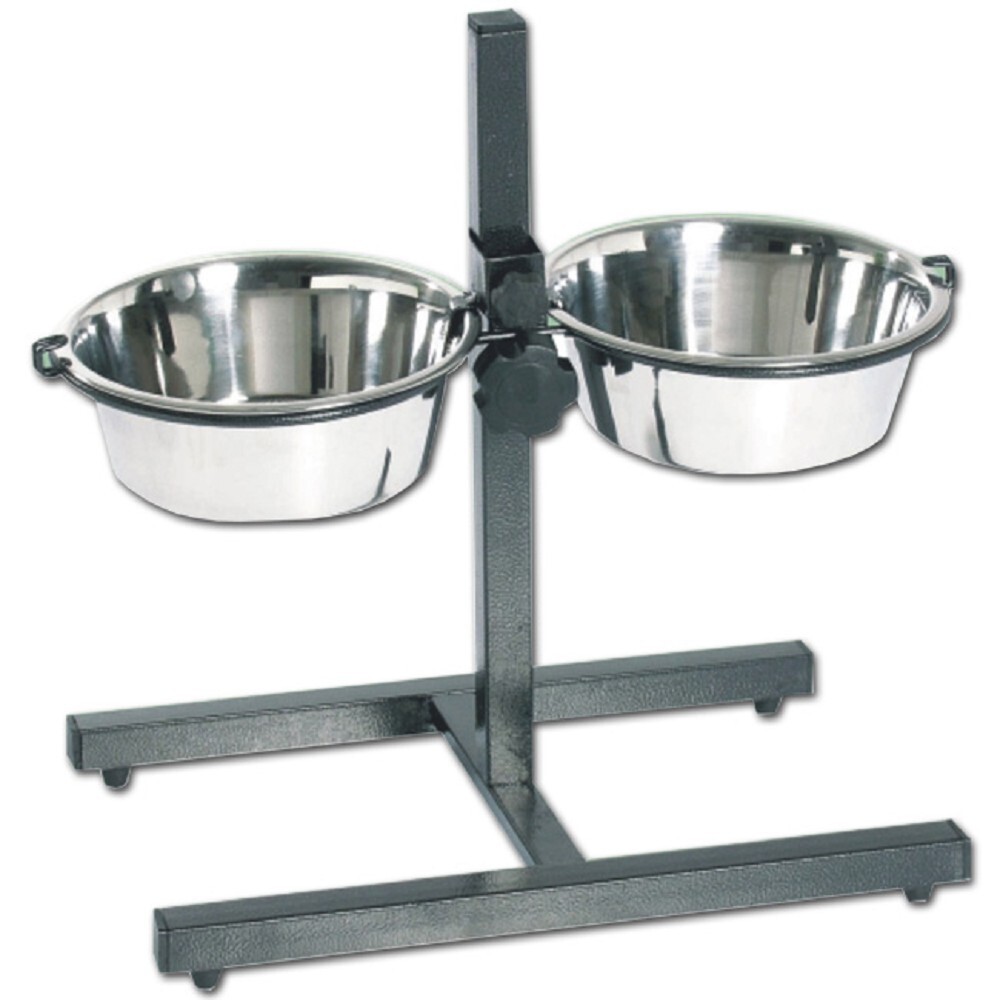 Nerezové misky ve stojanu působí preventivně proti torzi žaludku.Nastavitelná výška, nožičky proti poškrábání podlahy.Obsahuje misky 2 x 2 l.Výška stojanu: 43 cmMax. nastavitelná výška misek: 39 cm przeczytaj całość
