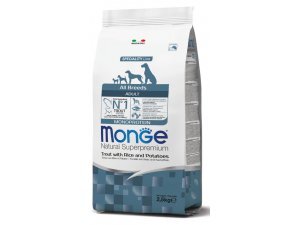 MONGE DOG Pstruh, rýže, brambor 2,5kg, 28/15