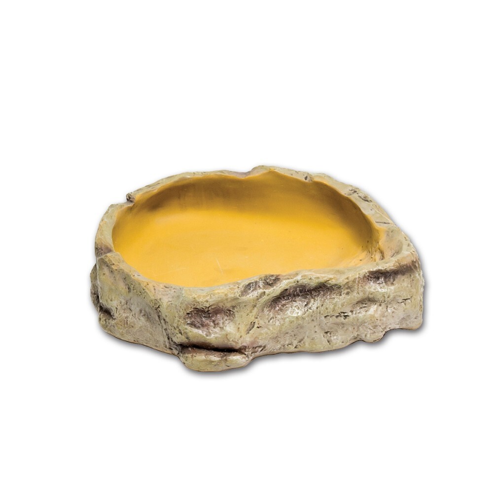 Miska na vodu pro terarijní živočichy velikosti M. Nádoba je vyrobena z bezpečného polyresinu. Povrchová úprava je zpracována tak, aby miska svým vzhledem co nejvíce připomínala přírodní dekoraci, kámen, skalku, apod. Misky jsou tvarovány odlitím ve formách a jsou mimořádně odolné.• Rozměr: 20,5x16,5x5cm• Na výběr je několik velikostí misek: XS, S a L