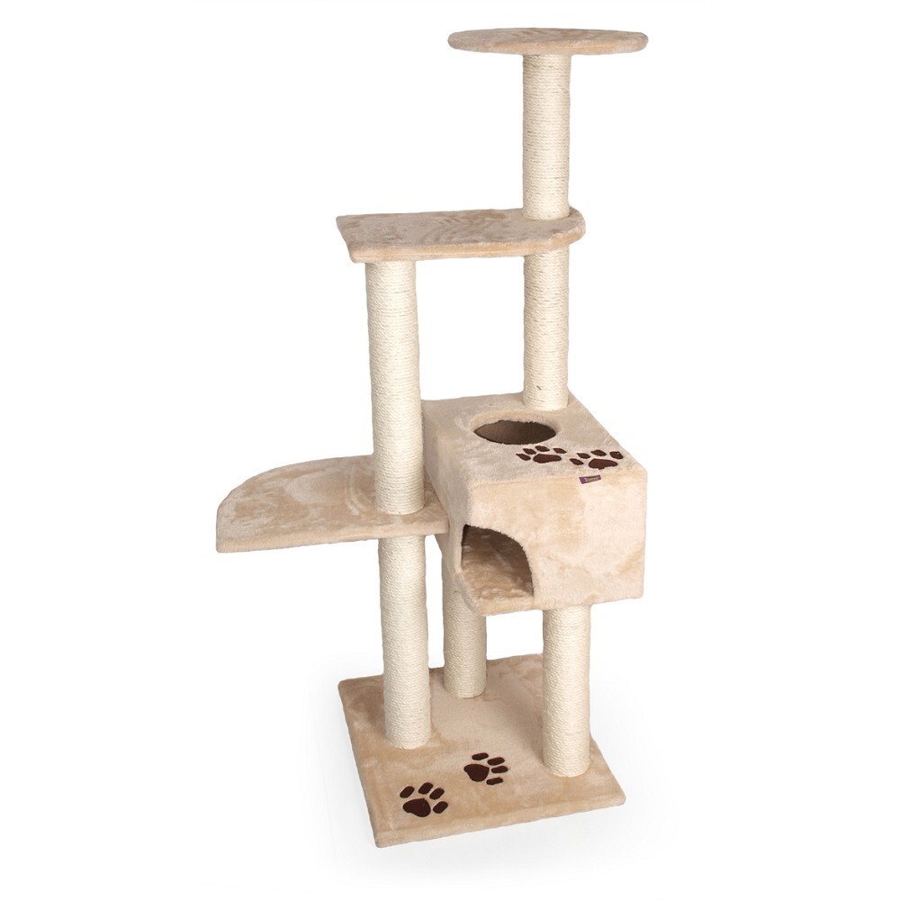 Stabilní robustní škrábadlo pro kočky• 3 patra a boudička se dvěma průlezy• zesílené sisalové sloupky o průměru 8,5 cm• plyš v pískové barvěRozměry:• základna: 45 x 45 cm• celková šířka: 70 cm• výška: 140 cm przeczytaj całość