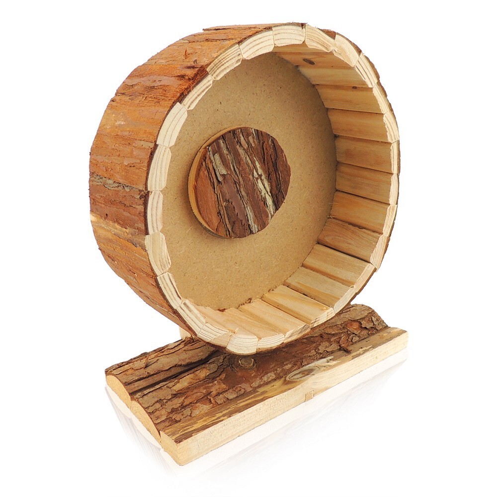 Zapewnij swoim małym gryzoniom zabawę i ruch dzięki naturalnemu drewnianemu kołowrotkowi!