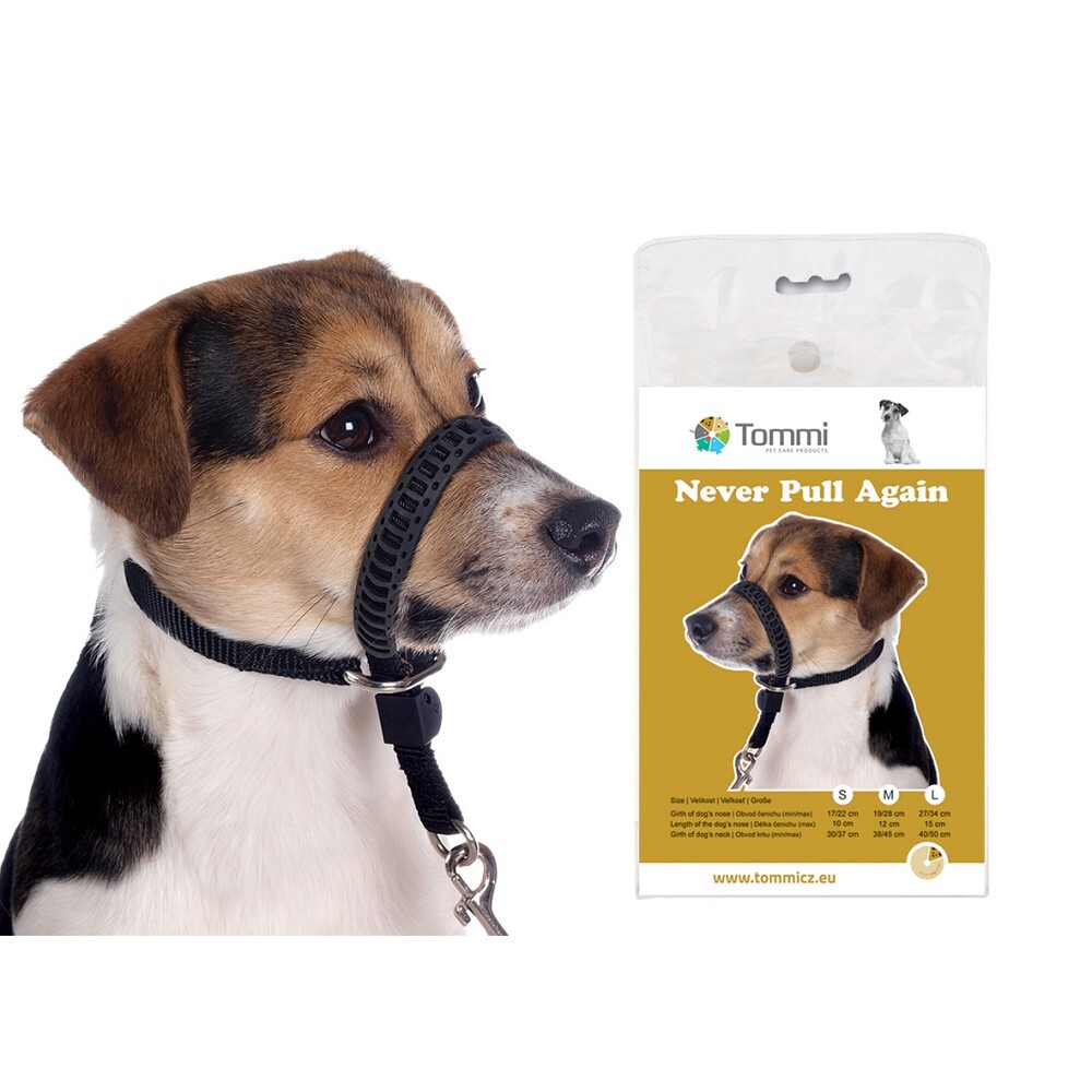 Nylonowe ogłowie dla psów - pomocnik przy treningu, rozmiar S. Przy lekkim nacisku działa na pysk psa i zapobiega ciągnięciu na smyczy. • ogłowie nie może być zbyt ciasne i nie może dusić zwierzęcia • psu musi umożliwiać swobodny ruch głową i szczękami. Nylonowy pasek z gumowym podszyciem nałóż psu na pysk, oczko do przymocowania smyczy skieruj w dół. Ustaw odpowiedni rozmiar, zapiąć plastikową klamrą za uszami i przypiąć smycz. Dostępne w trzech rozmiarach: S - obwód pyska 17/22 cm, długość pyska 10 cm, obwód szyi 30/37 cm M - obwód pyska 19/28 cm, długość pyska 12 cm, obwód szyi 38/45 cm L - obwód pyska 27/34 cm, długość pyska 15 cm, obwód szyi 40/50 cm