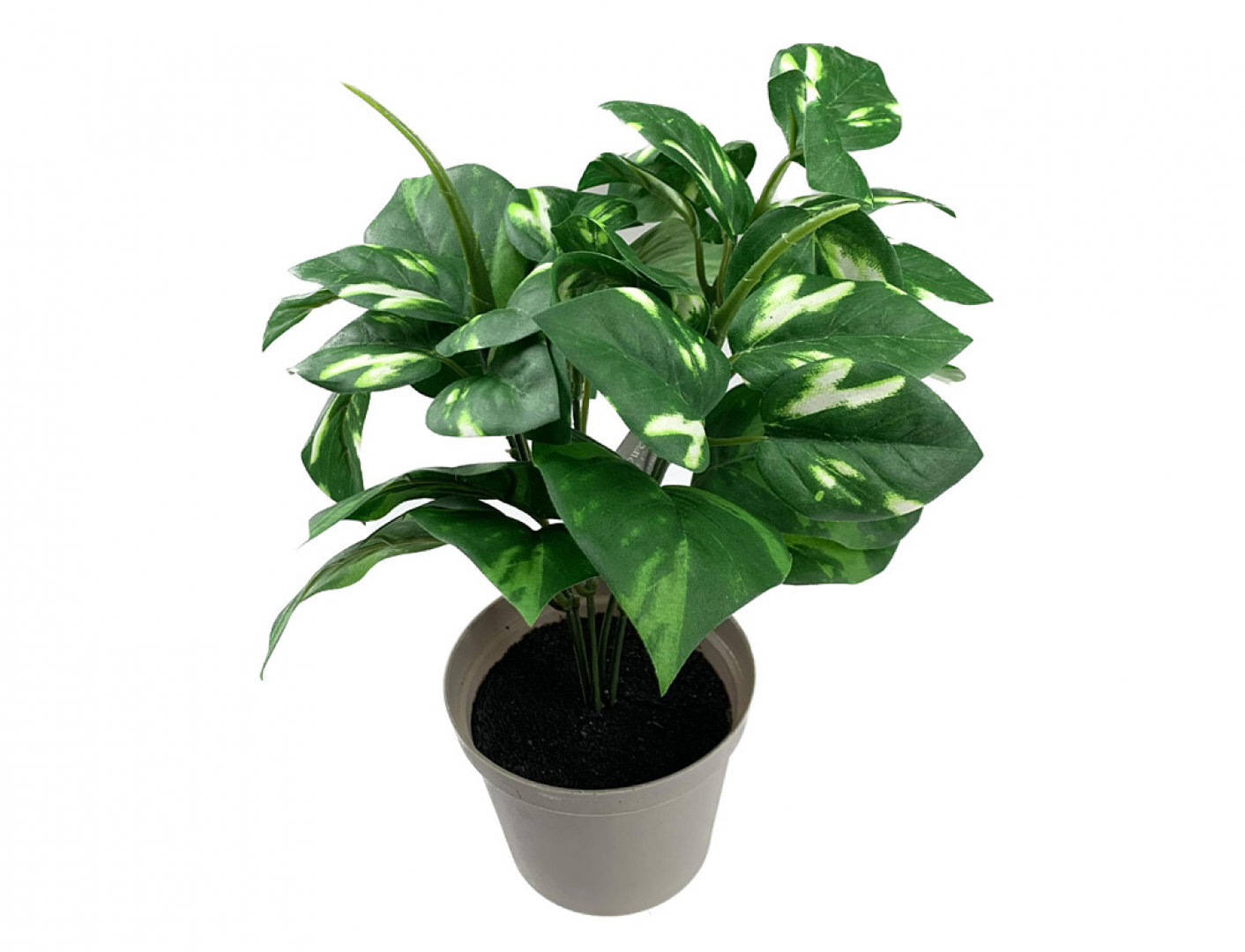 Umělá květina imitující pothos. Vhodná na dekorace či jako přízdoba. Aranžovaná v květináči. Materiál: plast. Velikost: 27 cm. Barva: zelená. przeczytaj całość