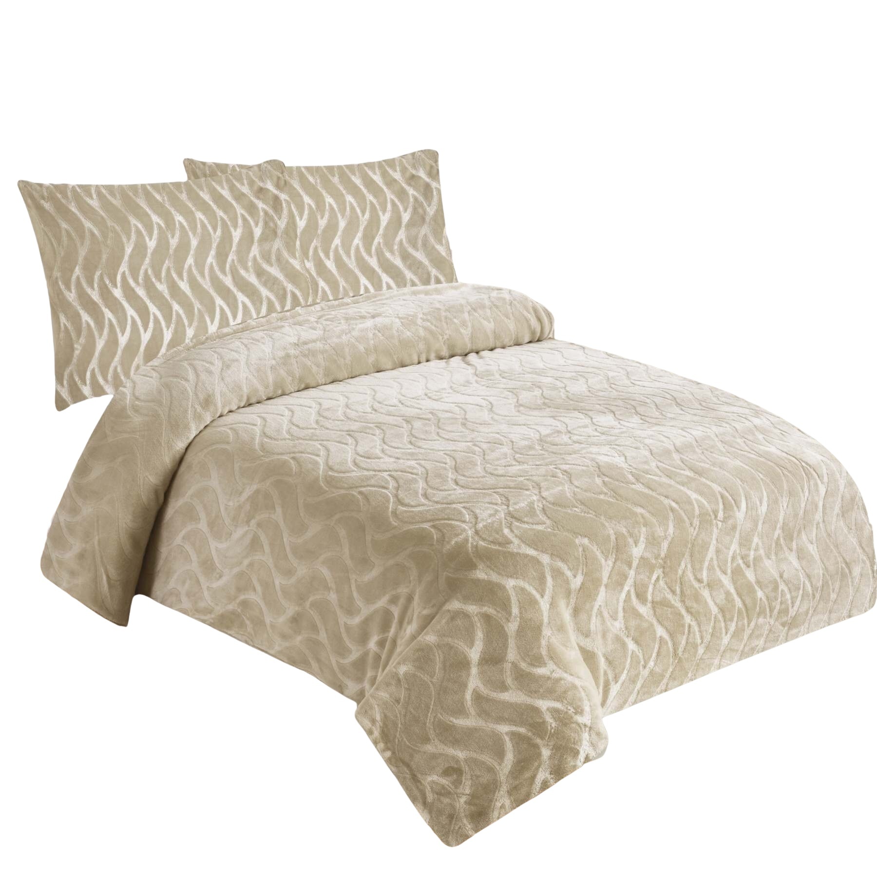 Jahu Povlečení mikroflanel struktura Vlnka béžová 140x200, 70x90 cm
