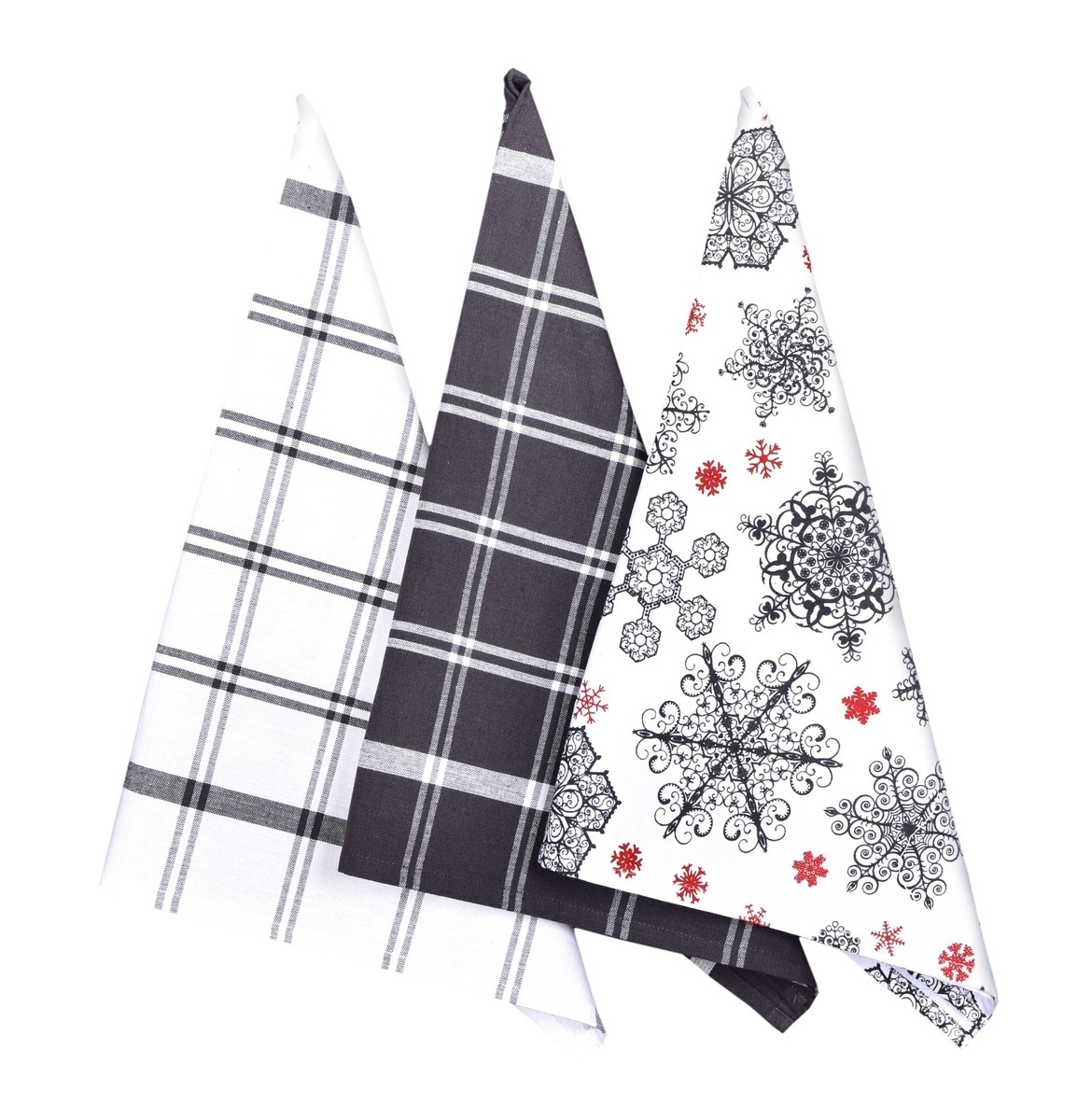Utěrka bavlněná, Vánoční Vločky 1167, komplet 3 ks, bílá
