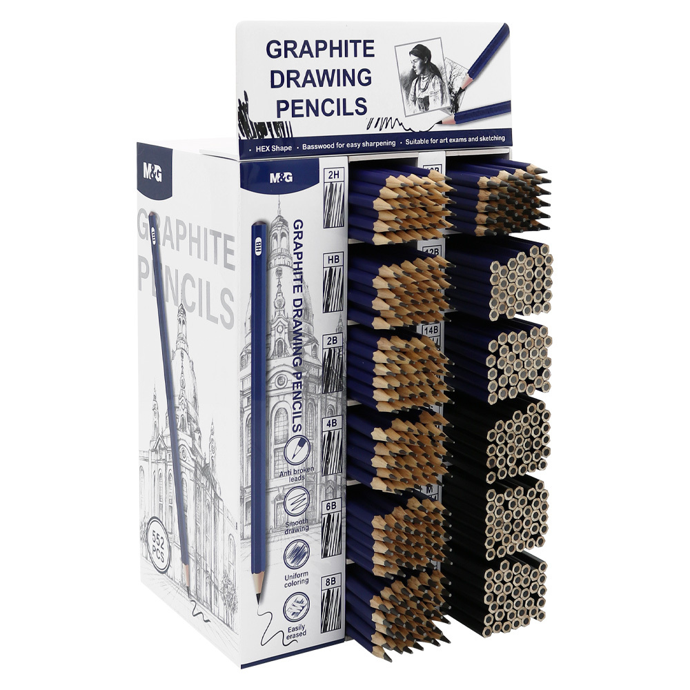 Stojan + grafitové tužky (různé tvrdosti grafitu) M&G - sada 552 ks