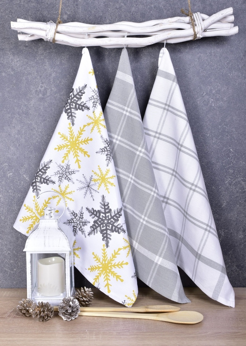Název: Vánoční utěrky Šedé a žluté vločky.