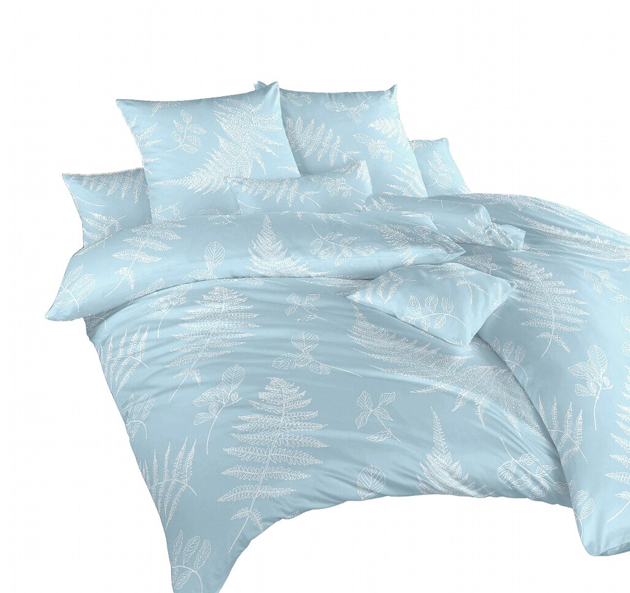 Dadka Povlečení krep Kapradí bílé na světle modrém 200x200, 2x70x90 cm