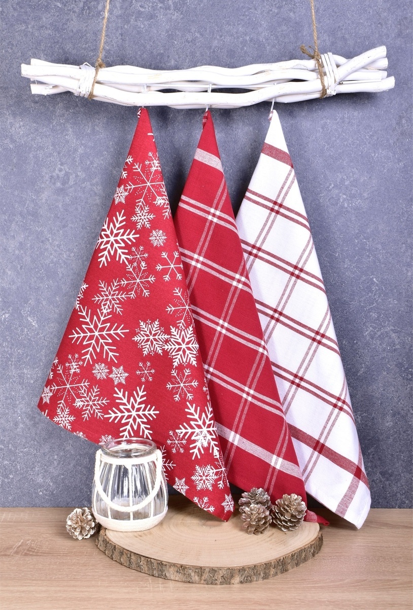 Utěrka bavlněná, Vánoční Vločky 1316, komplet 3 ks, červená