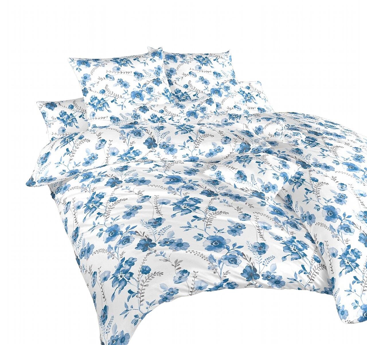 Dadka Povlečení flanel Kvítí modré na bílém 140x220, 70x90 cm