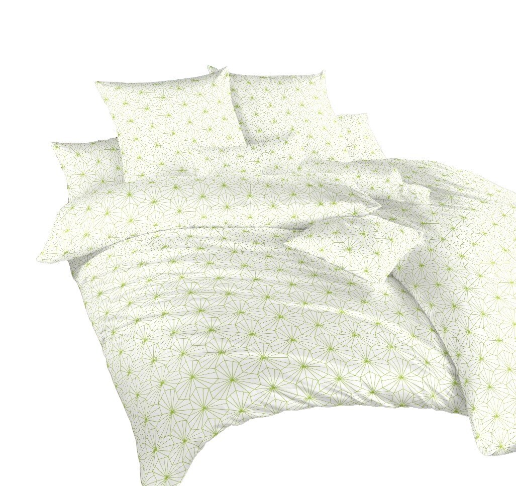 Obsah balení: 1x polštář o rozměru 70x90 cm a 1x povlak na přikrývku o rozměru 140x200 cm.Dezén: Krystal kiwi na bílém.Bavlněné povlečení je oblíbené pro svoji měkkost, vysokou savost a prodyšnost.Materiálové složení: 100% česaná bavlna, nevysrážená (nejkvalitnější příze, hladký a příjemný povrch...