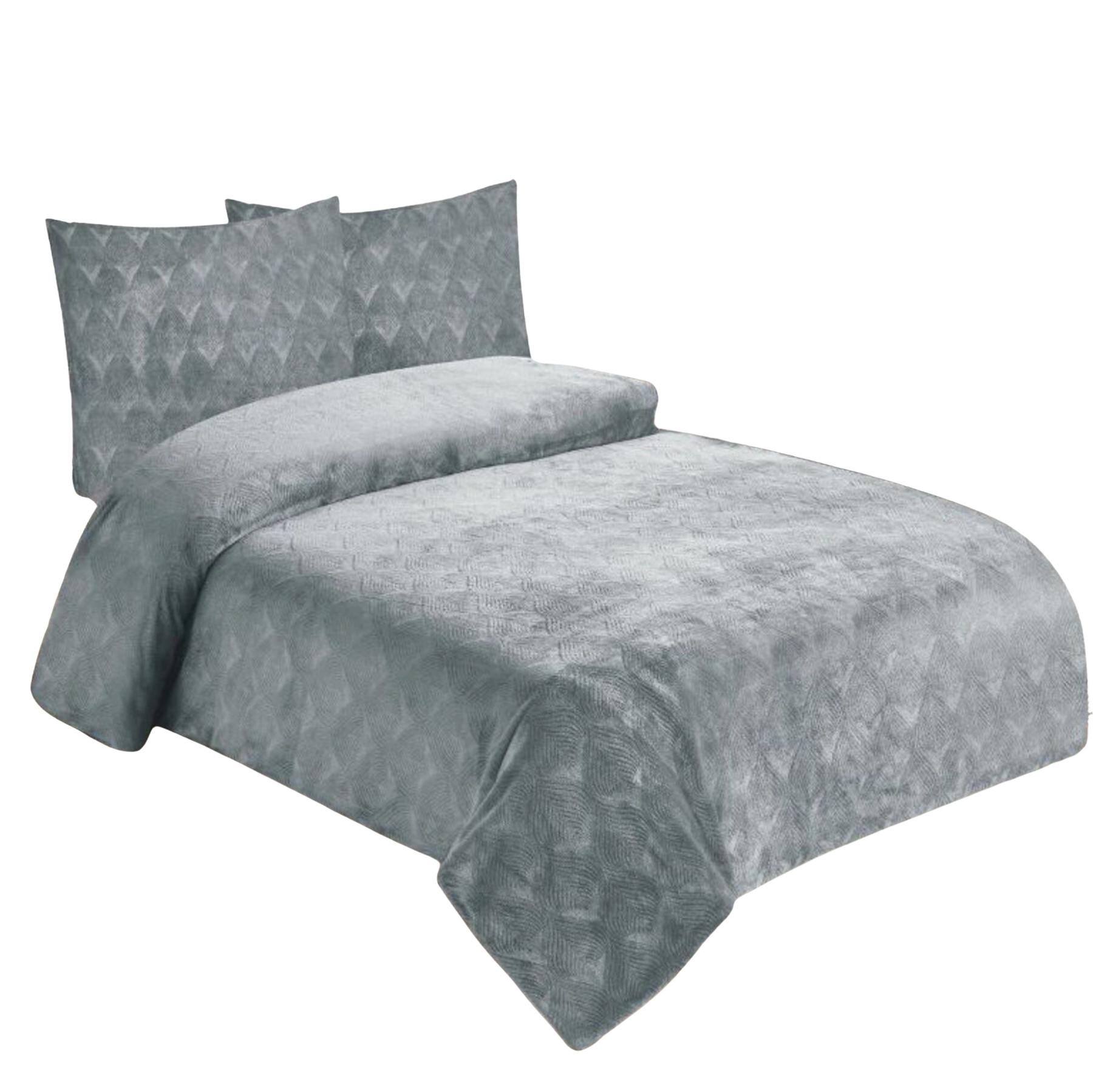 Jahu Povlečení mikroflanel struktura Listy světle šedé 140x200, 70x90 cm