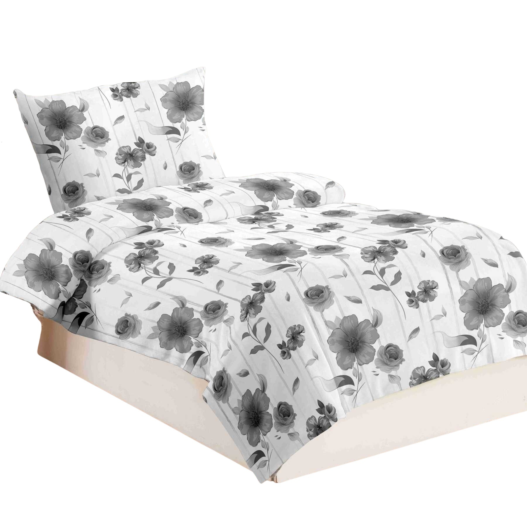 Jahu Povlečení mikroflanel Šedobílá kytka 140x200, 70x90 cm