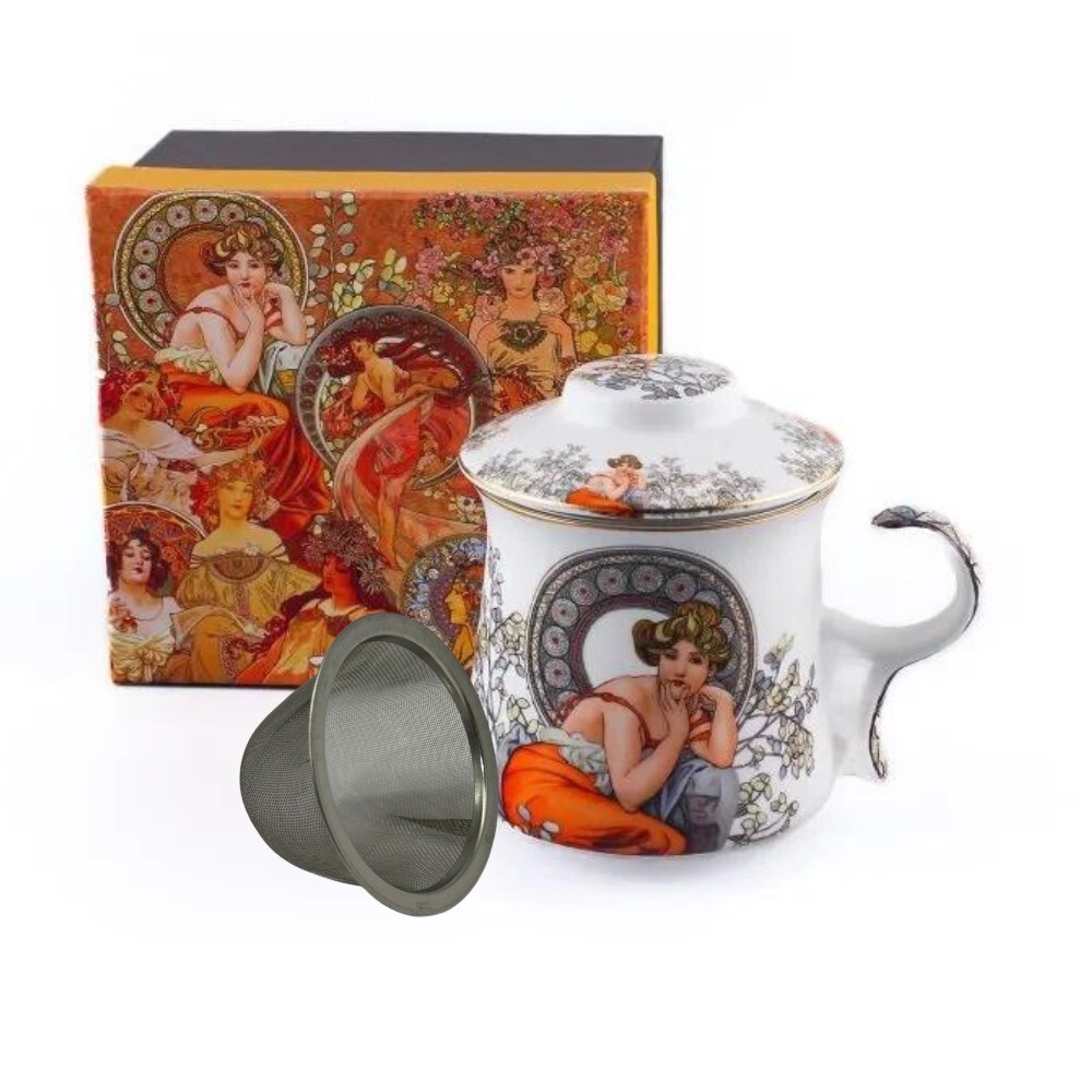 HOME ELEMENTS 400 ml hrnek se sítkem a víčkem - Mucha světlý