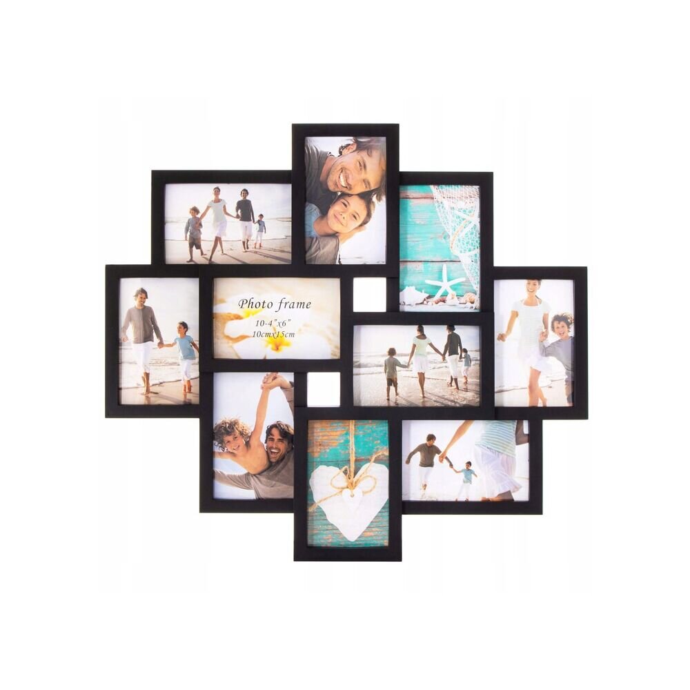 Ramka ścienna na 10 zdjęć w formacie 10x15 cm. Możliwość montażu poziomego i pionowego na ścianie, łatwa wymiana zdjęć. Bardzo lekkie, a jednocześnie solidne wykonanie, efektowny wygląd. Wymiary całkowite 53x49 cm. przeczytaj całość